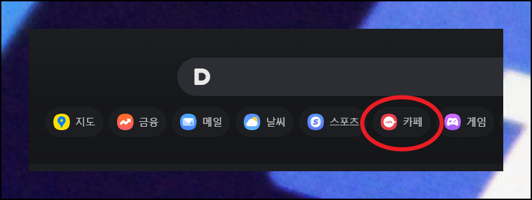 다음 포털의 첫 화면에서 시작해보세요. 검색창 아래쪽에서 "카페" 메뉴를 찾아 선택하면 됩니다.
