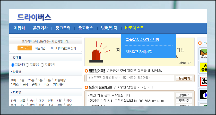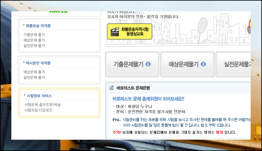 실제 문제 풀이 연습을 위해서는 드라이버스 웹사이트를 추천해요. 화물운송 자격시험과 공통되는 영역이 상당히 많아서 이를 활용하는 방식으로 기출문제집 자료를 이용할 겁니다. 무료로 제공되는 서비스라서 부담 없이 이용할 수 있어요.